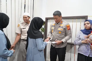 "Melalui kegiatan ini, kami ingin berbagi kebahagiaan dan memberikan dukungan kepada anak-anak yatim. Kami berharap kegiatan ini dapat memberikan manfaat serta menjadi momen yang penuh berkah untuk semua,"* ungkap Kapolres AKBP Moh Faruk Rozi, S.I.K., M.Si.,.Santunan berupa bantuan materi dan kebutuhan pokok diserahkan secara langsung oleh Kapolres Tasikmalaya Kota kepada 100 anak yatim yang hadir. Kegiatan ini juga menjadi ajang silaturahmi antara jajaran kepolisian dengan masyarakat, menciptakan hubungan yang semakin harmonis dan penuh rasa kekeluargaan.